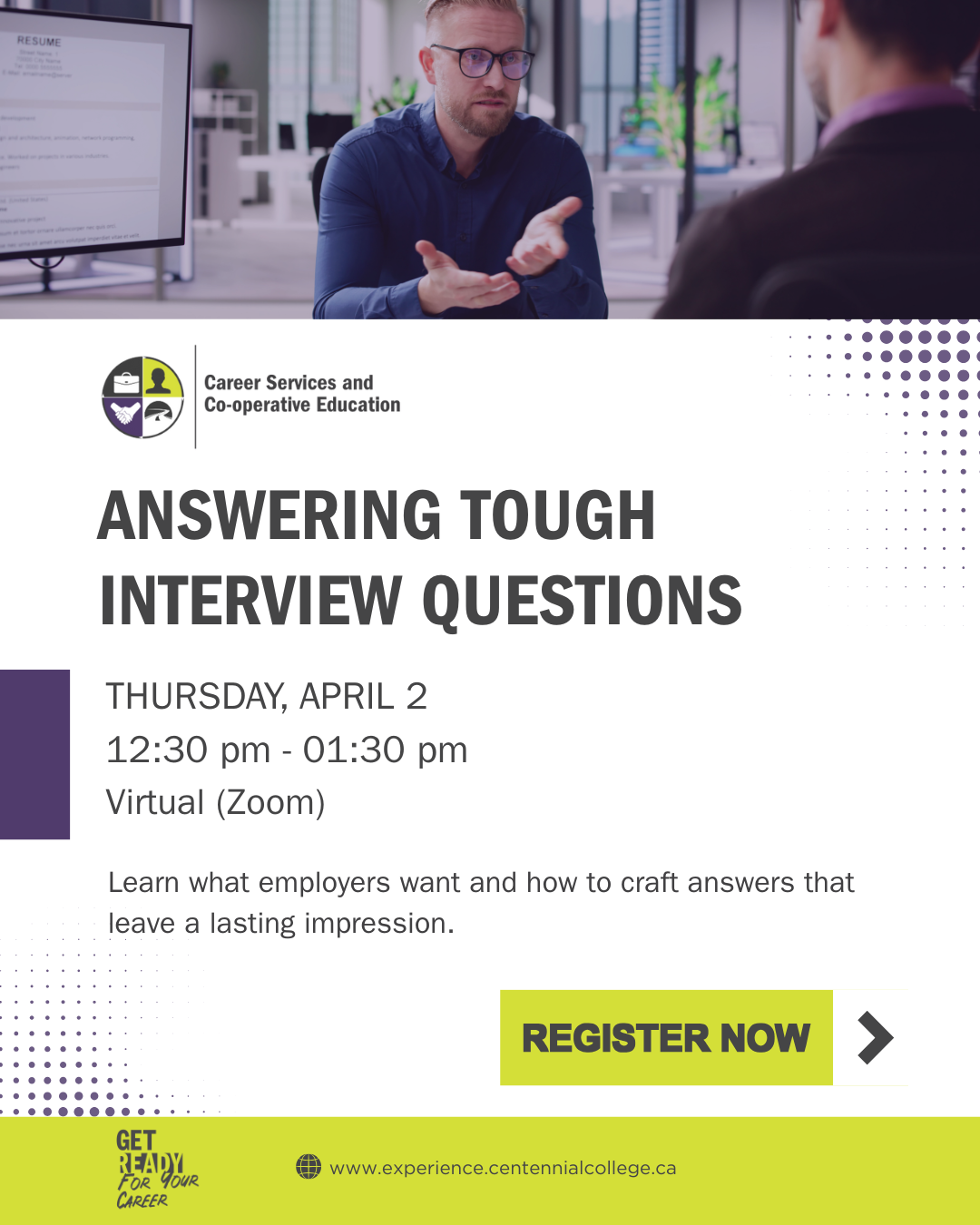 Description: No one was born with perfect interview skills! Join us to learn the art of answering tricky interview questions by understanding what employers are really looking for and how to construct your answers to make a lasting impression.